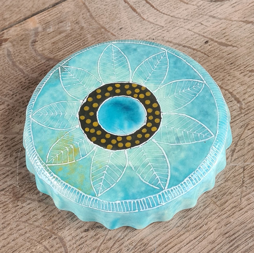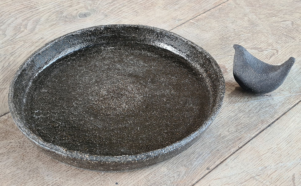 Abreuvoir pour oiseau gris/vert en grès gris moucheté.